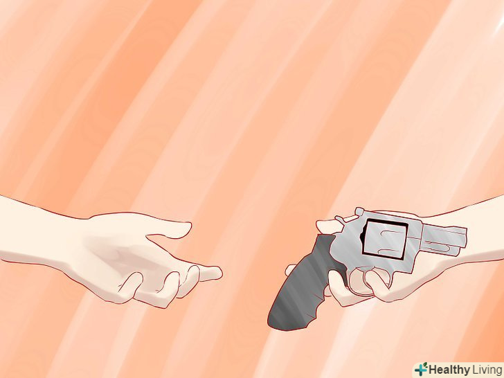 Після того, як бандит впустить зброю, штовхніть або відкиньте пістолет подалі, так щоб він не зміг його перезарядити або скористатися ним.