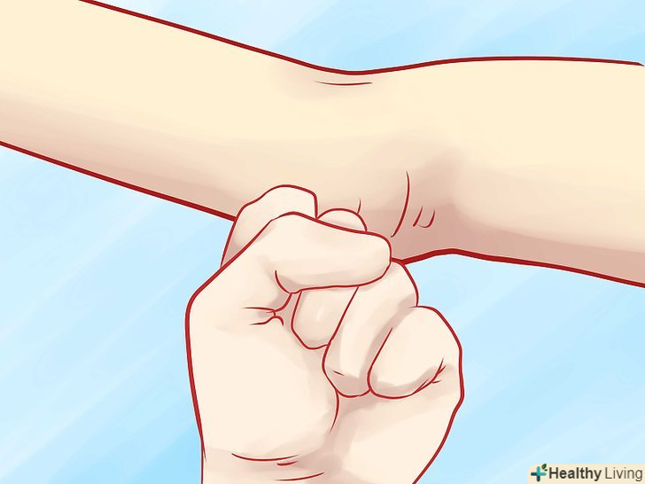 Закріпіть іншу руку таким же простим способом, обернувши пальцями м'ясисту область нижче мізинця, а великий палець, поставивши в тому ж місці, як на задній стороні його руки раніше.