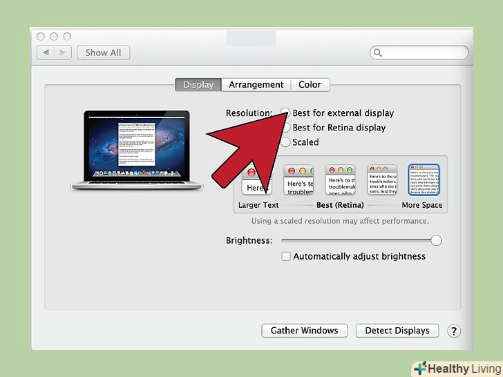 Виберіть опцію "краще зображення на зовнішньому дисплеї".це дозволить оптимізувати Дозвіл екрану для отримання якісної картинки на екрані телевізора.