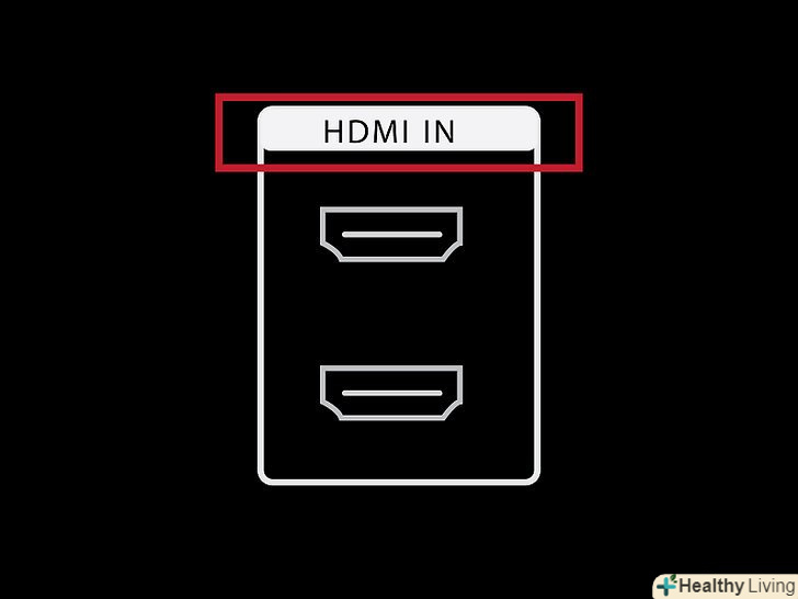 Визначте типи роз'ємів в телевізорі.у більшості телевізорів роз'єми розташовані на задній панелі, але деякі роз'єми можуть розташовуватися і на бічній панелі телевізора.- У більшості сучасних телевізорів є один або кілька роз'ємів HDMI. Це найшвидший і легкий спосіб підключити комп'ютер до телевізора, причому цей роз'єм забезпечує кращу якість зображення. HDMI-кабель-це єдиний тип кабелю, через який передається як відео-, так і аудіосигнал.