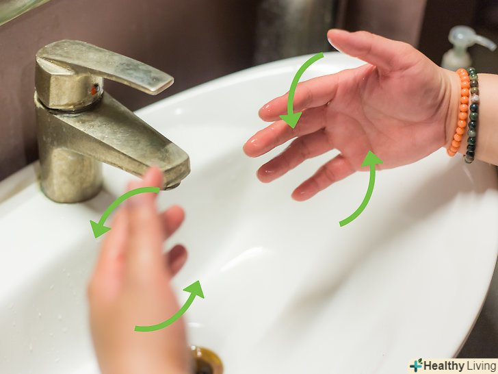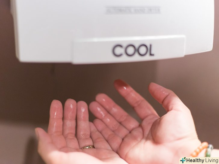 Ретельно вимийте руки, перед тим як висушити їх сушаркою. хоча сушка рук необхідна для зниження поширення мікробів, ще більше значення для гарної гігієни має ретельне миття рук. Перш ніж висушити руки сушаркою, вимийте руки наступним чином: [1]- Намочіть руки під теплою або холодною чистою проточною водою.