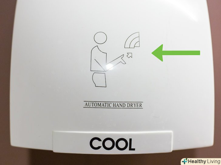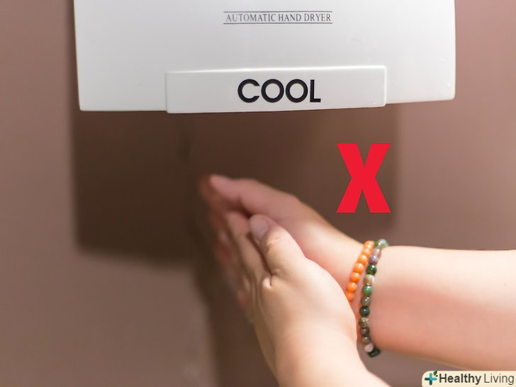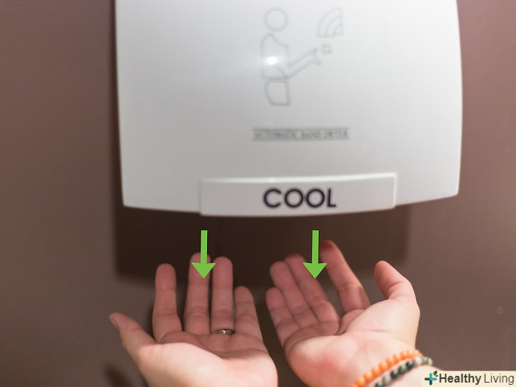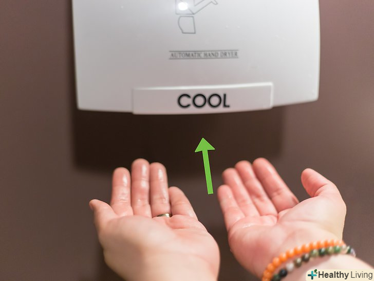 Зачекайте, поки руки повністю не висохнуть. Тримайте руки під сушаркою, до тих пір поки вони повністю не висохнуть, так як вологі руки можуть привести до поширення мікробів.