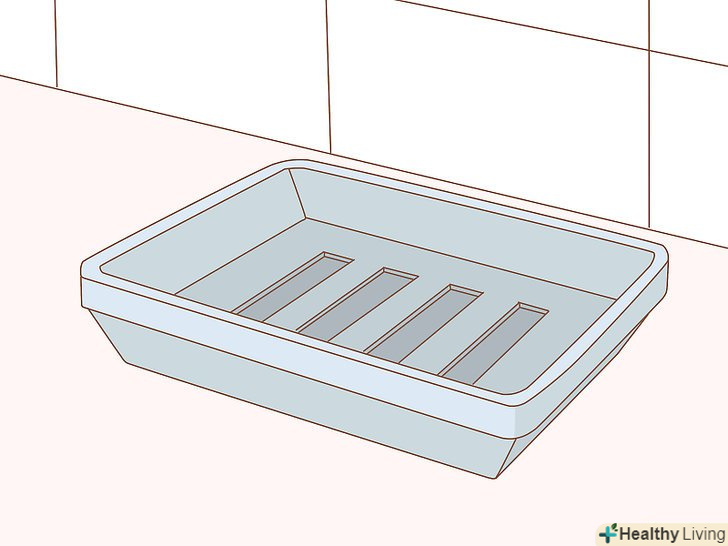 Розріжте брусок мила на кілька частин. дрібні шматки мила прослужать довше, оскільки ви кожен раз будете брати з собою в душ лише одну його частину. Це означає, що кожен раз під час купання ви будете використовувати окремий невеликий брусок мила, а решта залишаться сухими для подальшого використання. [9]- Розріжте бруски мила навпіл або навіть на третину, якщо це можливо. Користуйтеся тільки одним бруском до тих пір, поки він не закінчиться.