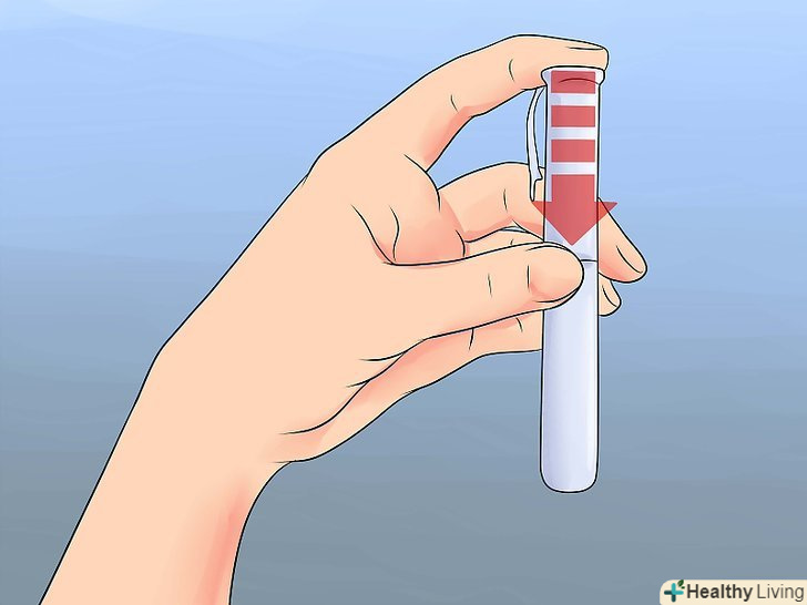 Повільно введіть ширшу верхню частину аплікатора в піхву. Направляйте аплікатор в сторону спини і вводите його до тих пір, поки пальці не стикнуться з тілом. Не переживайте, якщо забрудните пальці, тому що менструальна кров не містить бактерій. [10] крім того, руки можна вимити, коли закінчите.