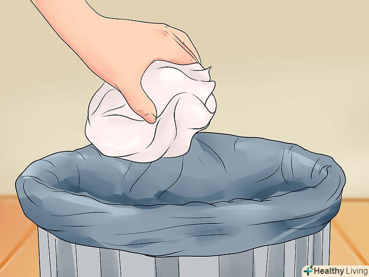 Викиньте тампон. деякі тампони можна змивати в унітаз — вони зроблені так, що самі поділяються на шматки і з легкістю проходять по трубах. Однак якщо у вашому унітазі маленький натиск води, якщо у вас встановлений септик або якщо ви знаєте, що труби в будинку часто забиваються, краще загорнути тампон в Туалетний папір і викинути у відро для сміття.