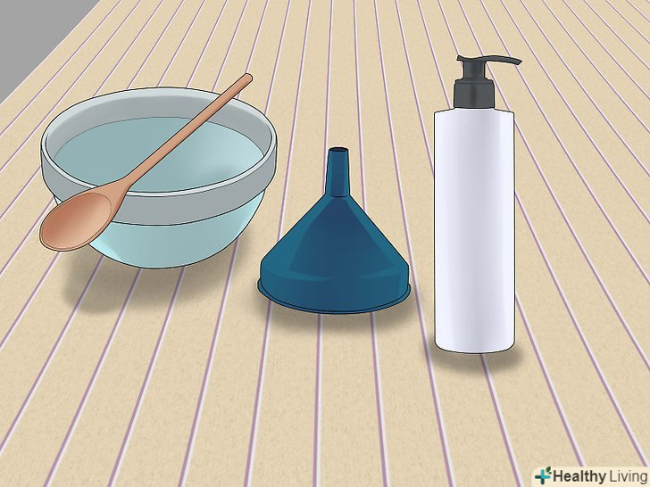 Підготуйте необхідні пристосування. Вам не буде потрібно купувати якісь особливі інструменти-швидше за все, все необхідне вже є у вас вдома, і ви без праці приготуєте потрібний засіб. Вам знадобиться чиста миска, невелика лопатка або ложка, воронка і порожній флакон від рідкого мила або антисептичного гелю. Якщо у вас немає під рукою відповідного порожнього флакона, можна взяти будь-яку іншу ємність. Головне, щоб її можна було закрити кришкою.