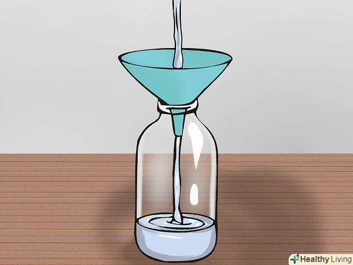 Підготуйте необхідні пристосування. вам знадобиться чиста миска, невелика лопатка або ложка, воронка і порожній флакон від рідкого мила або антисептичного гелю. [17] Якщо у вас немає під рукою відповідного порожнього флакона, можна взяти будь-яку іншу ємність. Головне, щоб її можна було закрити кришкою.
