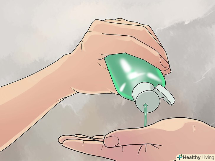 Правильно використовуйте антисептичний гель. щоб ефективно очистити руки від забруднення і мікроорганізмів, засіб потрібно правильно використовувати. Перш ніж наносити гель на руки, перевірте їх. Якщо ви бачите бруд на шкірі неозброєним оком, використовувати гель марно — він не зможе змити забруднення з рук, як це зробили б вода і мило.- Налийте на долоню стільки гелю, скільки в ній поміститься. Протягом 20-30 секунд ретельно розтирайте гель по шкірі, так щоб він покрив не тільки долоні, але і тильні частини кистей, шкіру між пальцями і зап'ястя. Не забудьте про шкіру під нігтями!