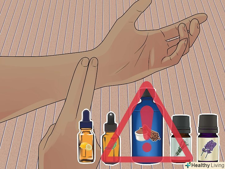 Проявіть обережність. натуральні ефірні масла зазвичай продаються в концентрованому вигляді, і їх неправильне застосування може привести до негативних побічних ефектів. Якщо ви вагітні або у вас є які-небудь порушення в роботі імунної системи, ніколи не використовуйте ефірні масла без попередньої консультації з лікарем. Якщо ви раніше не використовували ефірні масла, обов'язково проведіть шкірний тест на чутливість до масла, перш ніж додавати його в гель для рук або наносити на шкіру.- Ніколи не наносите на шкіру нерозбавлене ефірне масло! Концентрація активних компонентів в ефірному маслі дуже висока, тому таке масло може викликати роздратування шкіри. [12]