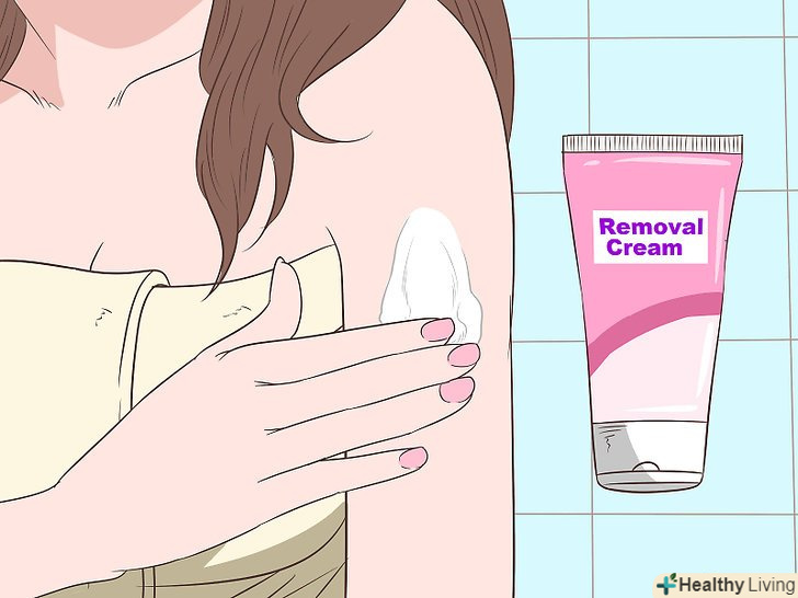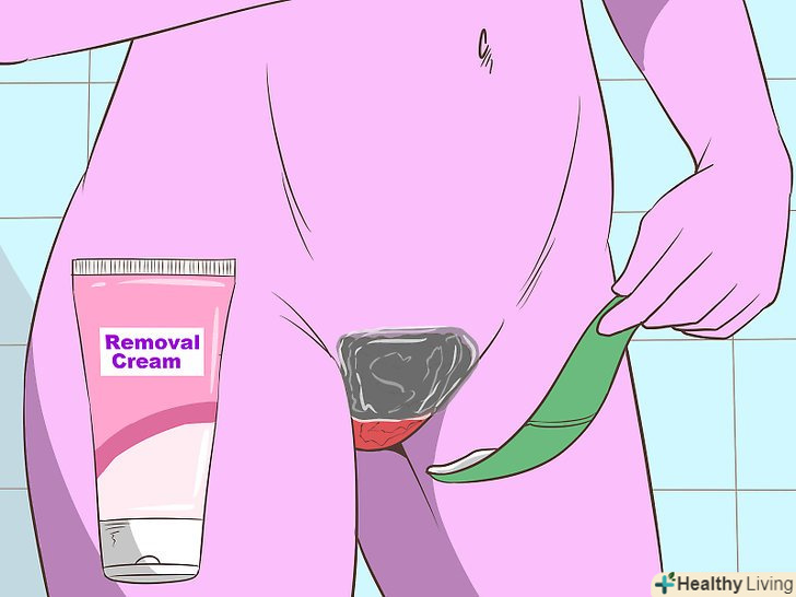 Попередньо випробуйте невелику кількість крему на своїй руці. перш ніж використовувати новий засіб або крем, краще нанести його на невелику ділянку менш чутливої шкіри. Випробуйте крем на руці або стегні і визначте, чи не викликає він почервоніння, біль або іншу негативну реакцію. Якщо так, то не використовуйте його для видалення лобкових волосся! [11]- Після нанесення крему почекайте 24 години, перш ніж використовувати його в області лобка.