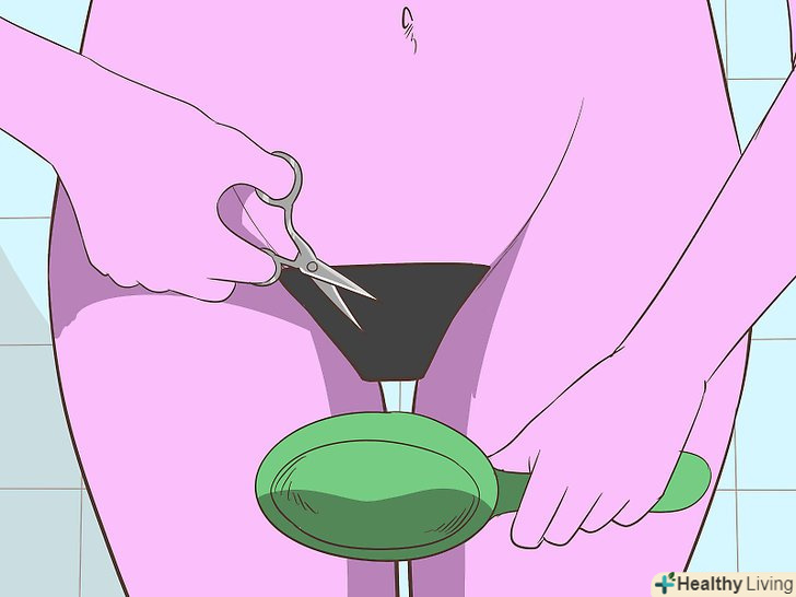 Підстрижіть волосся, перш ніж голити їх. при цьому не підстригайте волосся занадто коротко, щоб не порізатися. Використовуйте ручне дзеркальце, щоб краще бачити потрібну ділянку, і припиніть підстригати волосся, якщо вам здасться, що ви занадто близько підібралися до шкіри. Мета полягає в тому, щоб вкоротити волосся, а не повністю обрізати їх до самих коренів. [1]