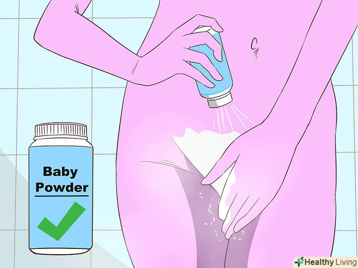 Нанесіть на шкіру дитячу присипку. дитяча присипка вбере вологу, в результаті чого шкіра стане сухою, і воскові смужки краще пристануть до неї. [21]