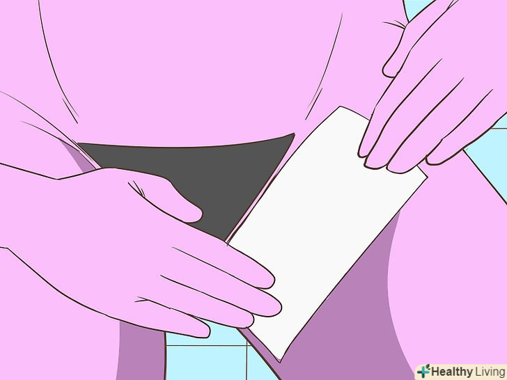 Видихніть повітря при відриванні воскової смужки. цілком ймовірно, що при воскової епіляції ви відчуєте біль, хоча і несильну. Постарайтеся при цьому не стискувати зуби і не напружувати м'язи, так як це лише погіршить становище. Замість цього зосередьтеся на глибокому диханні і видихніть повітря якраз в момент відриву смужки. [29]- Кажуть, що проведення воскової епіляції відразу після закінчення місячних допомагає знизити біль!