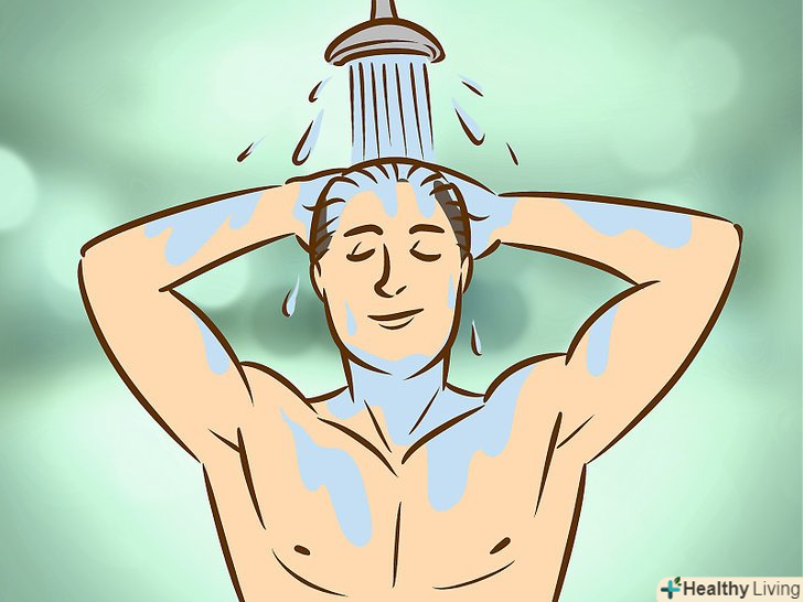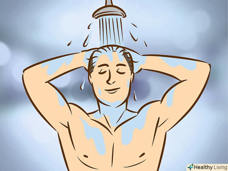 Приймайте душ. повторимося, що необхідно вибирати таку температуру води, щоб вона не ошпарила і не дратувала вашу шкіру. Використовуйте теплу (не гарячу!) воду, і намилюйте все тіло так, як зазвичай. [15]