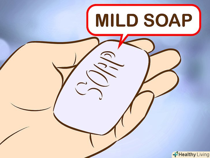 Візьміть м'яке мило. багато мила містять ароматизатори, які можуть дратувати чутливу шкіру, а деякі містять занадто жорсткі миючі засоби, щоб використовувати їх для статевих органів. Для отримання найкращих результатів вибирайте м'яке мило без ароматизаторів, яке призначене для тіла (іншими словами, не варто використовувати мило для рук). [3]- Якщо у вас чутлива шкіра, попросіть свого терапевта або дерматолога допомогти Вам підібрати відповідне для вас мило.