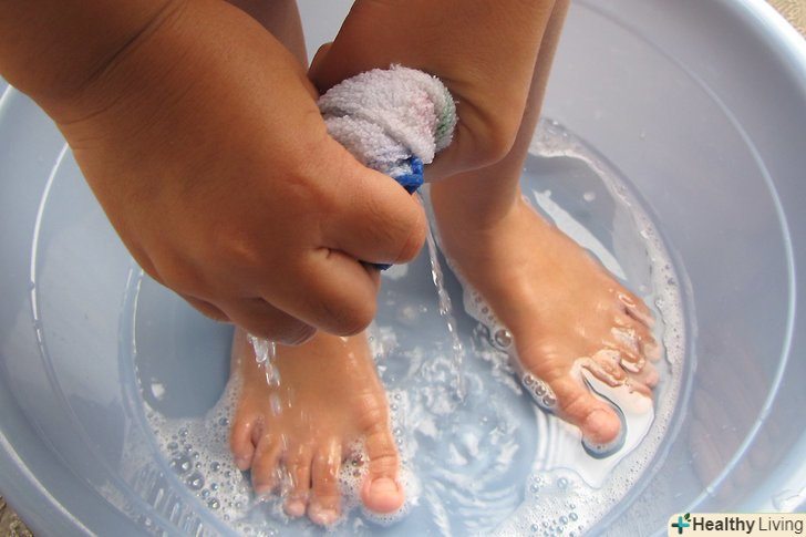 Вимийте ноги. за допомогою рушника потріть свої ноги акуратними, але твердими круговими рухами. Це включає в себе:- * між пальцями