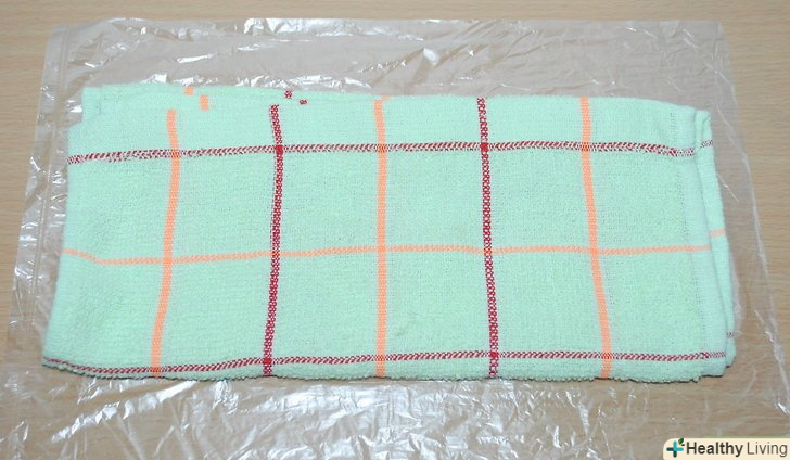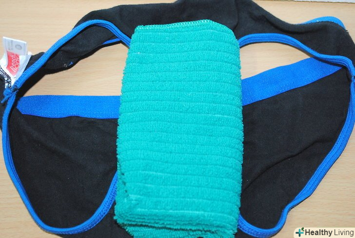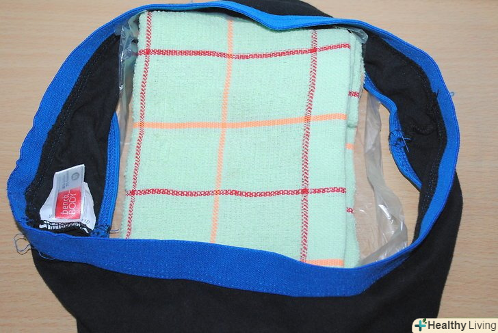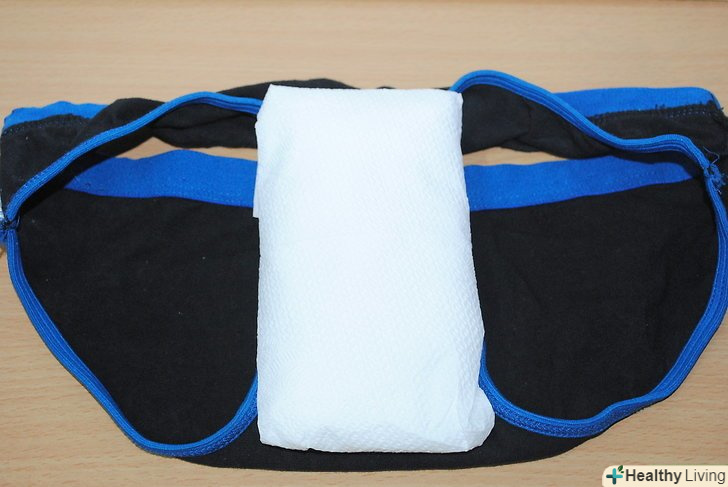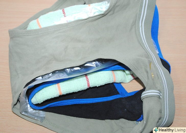Покладіть складений рушник на шматок поліетилену і потім прикріпіть на вашу нижню білизну