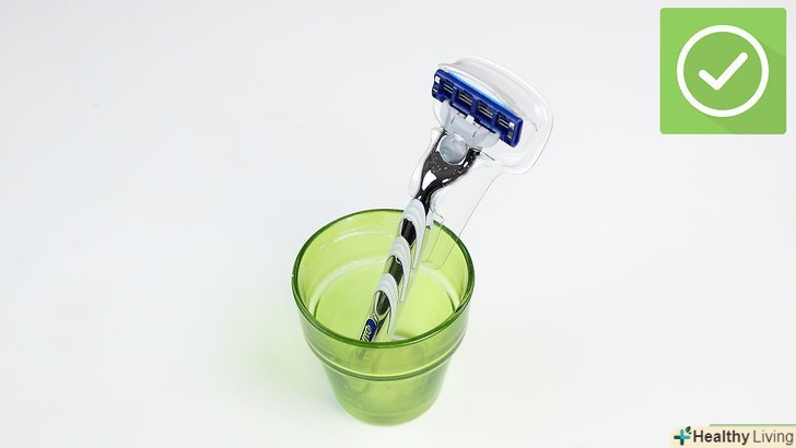 Зберігайте бритву в чистому і сухому приміщенні. Леза для бритви краще зберігати в закритій коробці або в якомусь контейнері з щільною кришкою. Бритву, якою ви зараз користуєтеся, можна покласти на підставку або поставити її вертикально в чашці, щоб з неї стікала вода. Зачекайте, поки бритва висохне, а потім приберіть її в безпечне місце, де ні їй, ні комусь іншому нічого не загрожуватиме. [15]- Не залишайте бритву на краю раковини або в ніші брудного душу, де на неї може потрапити мильна піна і бактерії.
