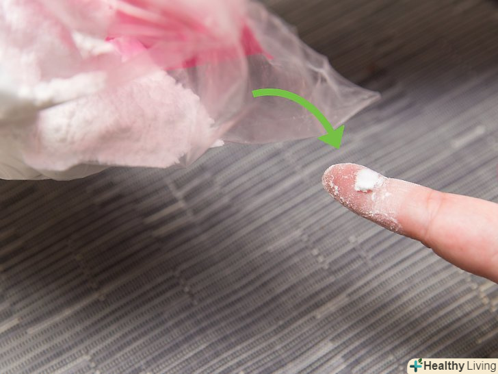 Візьміть замість зубної пасти харчову соду. якщо ви забули зубну щітку і зубну пасту, замість них ви можете скористатися звичайною харчовою содою. Власне, вона є компонентом багатьох зубних паст завдяки своїй здатності вибілювати зуби і видаляти наліт. Просто помістіть трохи соди на палець, паперовий рушник або серветку, а потім починайте чистити зуби. [23]