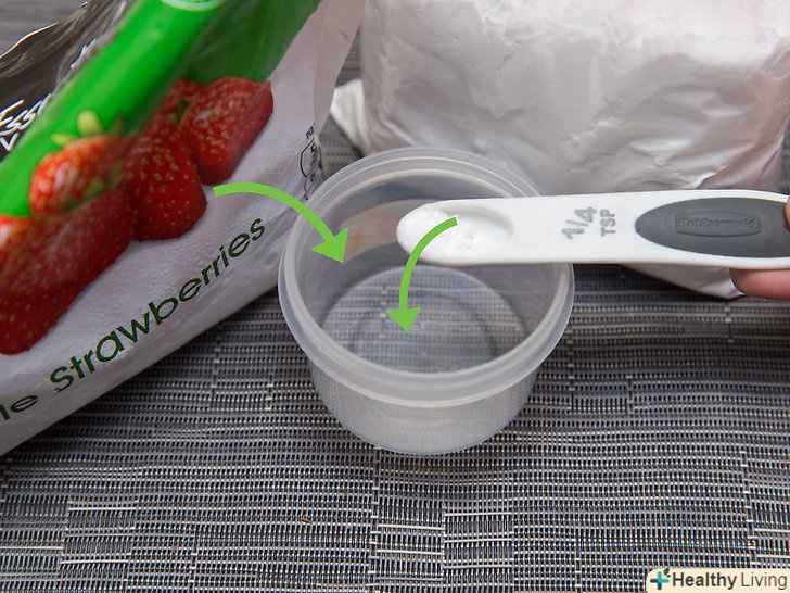 Зробіть зубну пасту з полуниці. полуниця містить вітамін С для підтримки здоров'я ясен, сильне в'яжучий засіб, який допомагає позбутися від зубного нальоту, і кислоту, відбілюючу зуби. Разом з содою або сама по собі, полуниця непогано замінює зубну пасту. [26]- Але обов'язково ретельно прополощіть рот після чистки, так як полуниця також містить цукор, який викликає карієс.