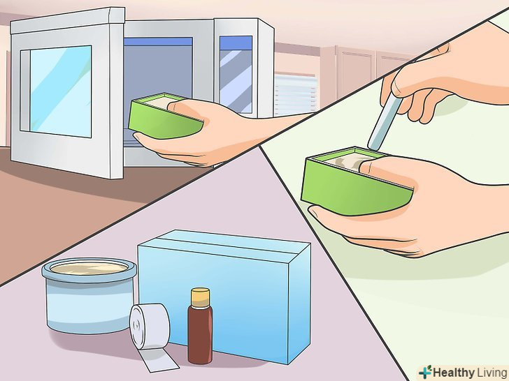 - Уважно дотримуйтесь інструкції до засобу для видалення волосся в домашніх умовах. У деяких наборах є ємність, в якій потрібно розігріти віск перед нанесенням, а інші складаються з готових смужок, які можна відразу клеїти.