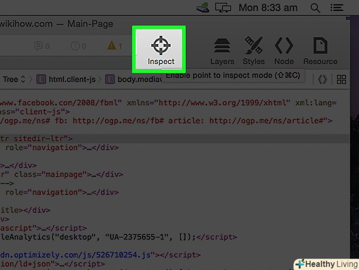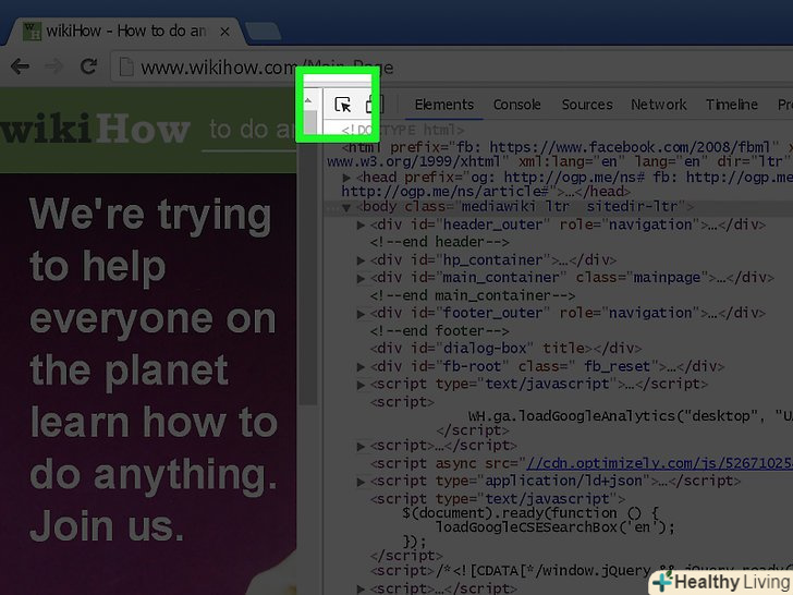 Натисніть кнопку Інспектора елементів. вона знаходиться у верхньому лівому кутку панелі веб-Інспектора. Значок цієї кнопки має вигляд прямокутника з курсором.