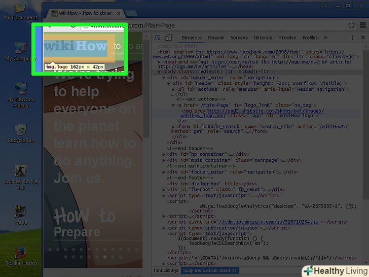 Клацніть по потрібному елементу веб-сторінки.у міру переміщення курсору по веб-сторінці на панелі веб-Інспектора будуть виділятися різні елементи.