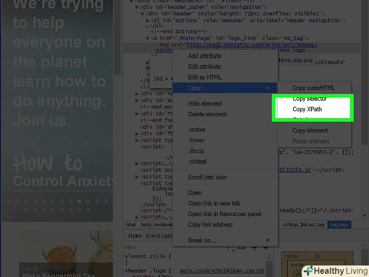 В меню виберіть «Копіювати XPath. XPath-шлях скопіюється в буфер обміну.- Якщо в меню вибрати "скопіювати міні-XPath", буде скопійовано тільки короткий XPath-шлях.