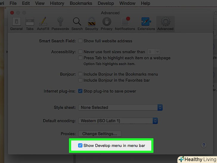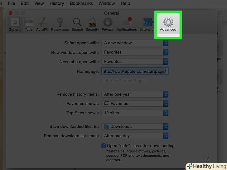 Перейдіть на вкладку "Додатково".відкриються розширені налаштування Safari.