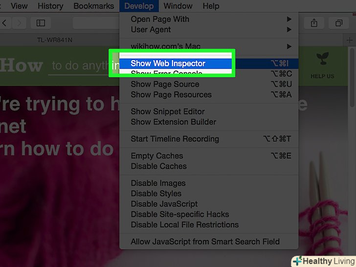 Відкрийте меню "розробка «і виберіть»Показати веб-інспектор".панель веб-Інспектора відкриється в нижній частині вікна.