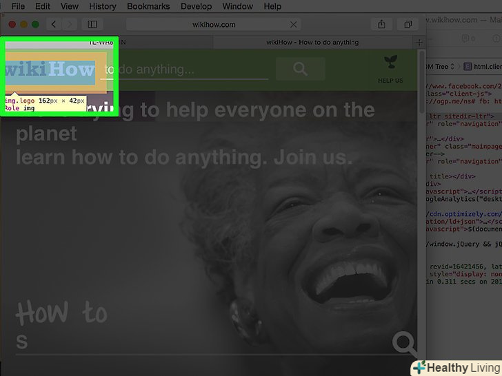 Клацніть по потрібному елементу веб-сайту. код елемента буде виділено на панелі веб-Інспектора.