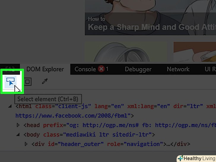 Натисніть "запустити пошук елемента".ця кнопка має значок у вигляді перехрестя і знаходиться у верхньому ряду кнопок на панелі веб-Інспектора.