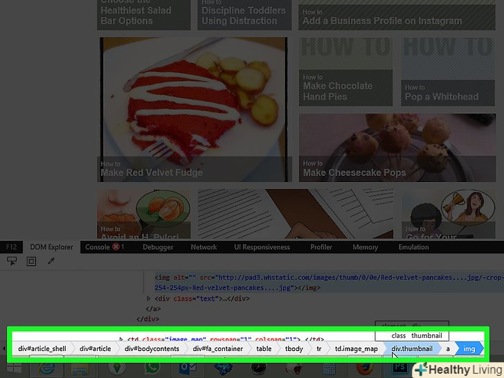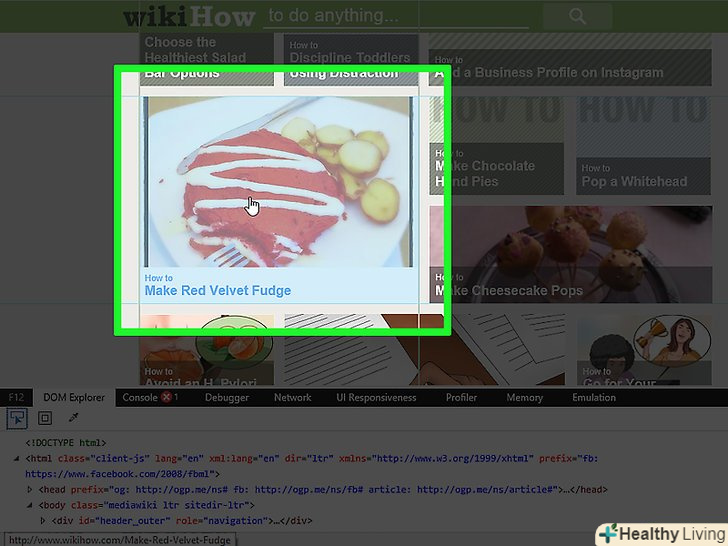 Клацніть по потрібному елементу веб-сторінки. будуть виділені елемент і його код (на панелі інструментів розробника).