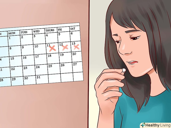 - Дізнайтеся більше інформації про таблетки Seasonale або про інші протизаплідні таблетки, через які період менструації починається рідше. Таблетки Seasonale розроблені таким чином, що кожен день протягом трьох місяців потрібно приймати активні гормональні таблетки, потім тиждень приймати «неактивні» таблетки плацебо, які активізують період менструації. У багатьох жінок виникає легке спонтанне кровотеча під час прийому активних таблеток, але цей метод все ж допомагає передбачити, коли у вас почнеться менструація, завдяки чому можна запланувати період купання. [16]