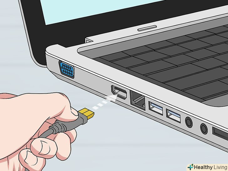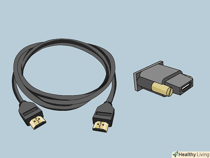 Виберіть правильний кабель або перехідник.- На більшості сучасних телевізорів буде як мінімум один повнорозмірний (тип A) HDMI-роз'єм, розмір якого становить 13,9 мм х 4,45 мм. Найбільш часто зустрічаються кабелі HDMI на одній стороні і роз'ємом DVI, DisplayPort або VGA на інший. Головне переконайтеся, що розмір конекторів відповідає роз'ємів на пристрої.