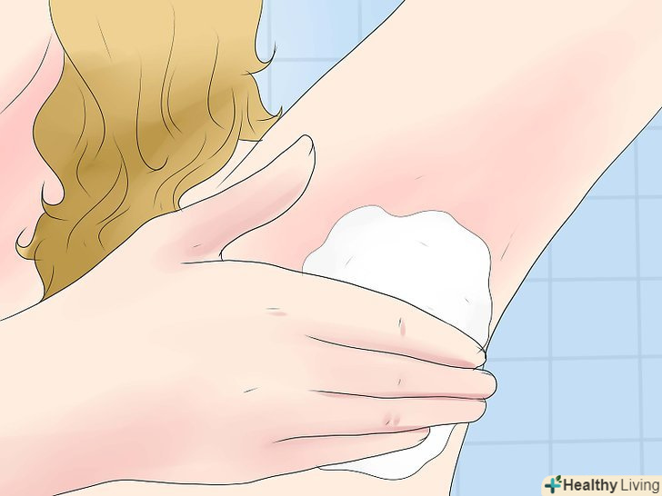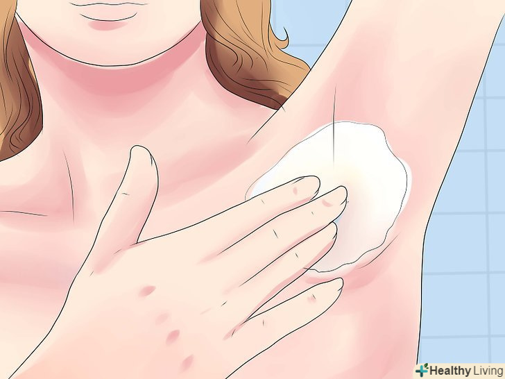 Підготуйте шкіру. гоління буде найбільш гладким при абсолютно сухому волоссі. Очистіть волосся під пахвами, щоб видалити залишки шкірного жиру або дезодоранту. [3]- Використовуйте спеціальні засоби до гоління, розроблені спеціально для електричних бритв. Вони зазвичай випускаються для чоловіків, щоб полегшити видалення волосся на обличчі, але і для голитися в пахвах згодяться.