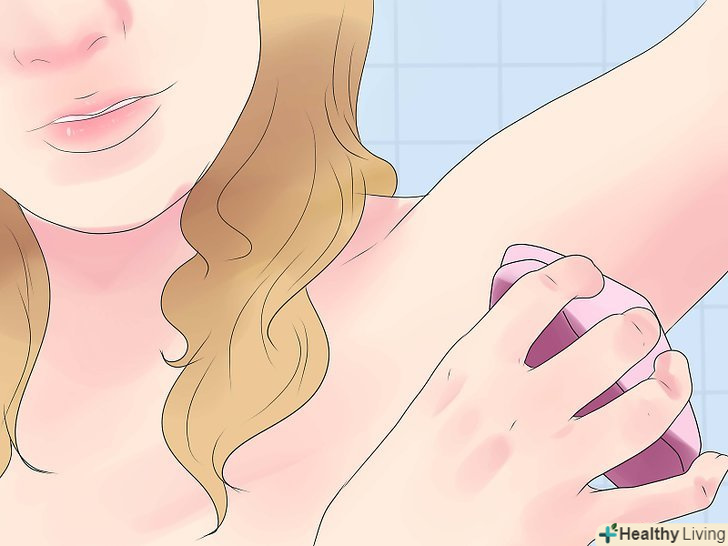 Почніть гоління. Тримайте бритву в іншій руці і почніть голити в напрямку росту волосся. Якщо у вас чутлива шкіра, то навіть гоління в напрямку росту волосся може привести пошкоджень шкіри. Якщо шкіра не чутлива-голіть і по росту волосся, і проти, так як волосся під пахвами ростуть в різних напрямках. [2]- Не тисніть на бритву занадто сильно, щоб уникнути порізів.