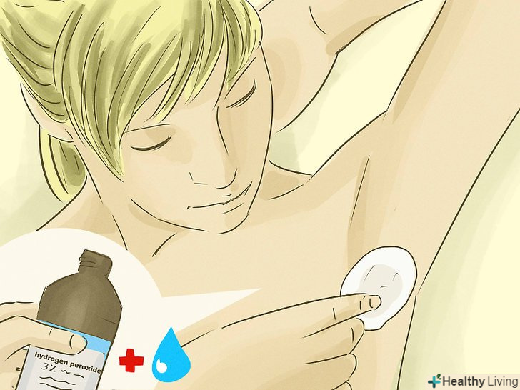 Позбавтеся від запаху тіла за допомогою розчину перекису водню, яка володіє антибактеріальними властивостями. візьміть склянку (250 мілілітрів) води і додайте в неї 1 чайну ложку (5 мілілітрів) тривідсоткового розчину перекису водню. Змочіть в отриманому розчині бавовняну серветку для обличчя, вичавіть зайву рідину і протріть шкіру під пахвами і в області паху, а також ступні ніг.