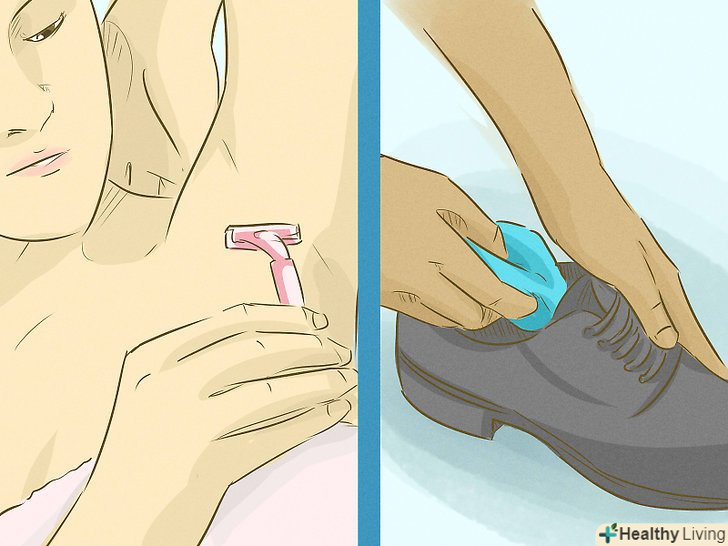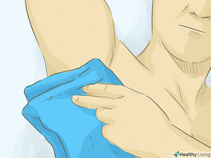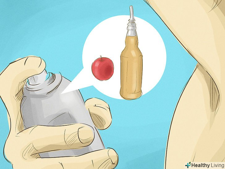 Протирайте шкіру яблучним оцтом. яблучний оцет вбиває бактерії, що викликають неприємний запах. Кожен день робіть ванночки для ніг, використовуючи розчин з 1 частини яблучного оцту і 3 частин води. Налийте трохи розчину в пляшку з розпилювачем і обприскуйте їм пахви. [6]- Яблучний оцет є досить сильним засобом, він може викликати печіння і свербіж у людей з чутливою шкірою. Зважаючи на це спочатку випробуйте розчин яблучного оцту на невеликій ділянці шкіри і ні в якому разі не наносите його на тільки що поголені пахви.
