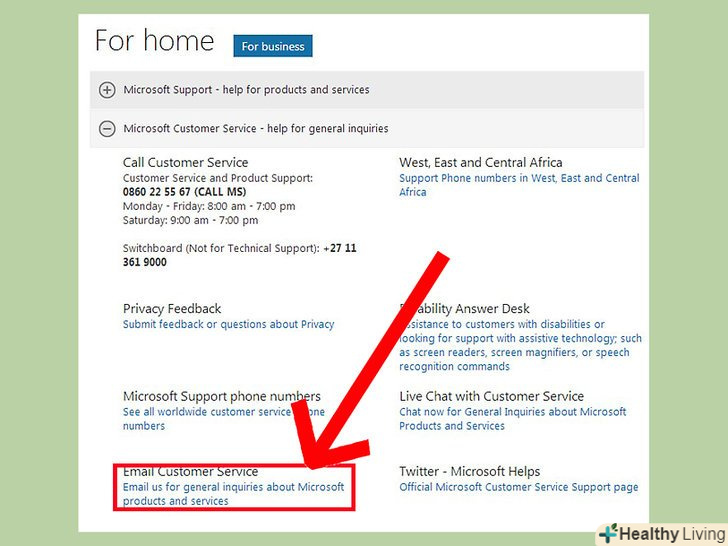 - Якщо ви віддаєте перевагу говорити з людиною, а не по електронній пошті або в чаті, Ви можете спробувати зателефонувати в найближчий до Вас офіс сайту корпорації Microsoft, щоб уникнути надмірних витрат на дзвінки.