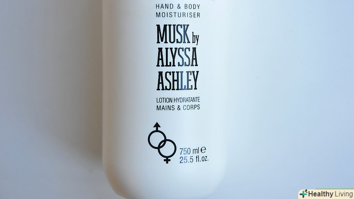 Нанесіть на шкіру запашний лосьйон. натріть своє тіло ароматним лосьйоном. Це особливо добре працює, якщо ви збираєтеся носити шорти, спідниці, речі з короткими рукавами або сукні без бретелей.