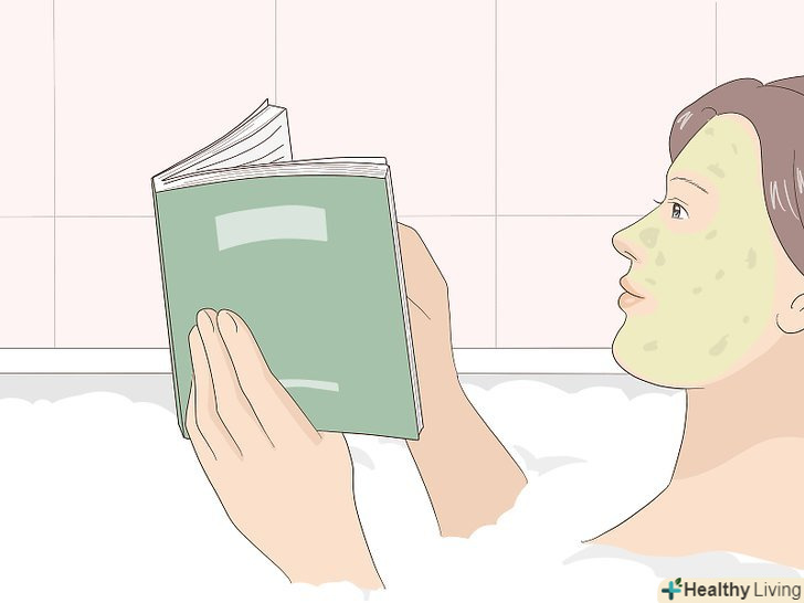 Побалуйте шкіру і нанесітьМаску для обличчя, перш ніж зануритися у ванну. Маску можна зробити самостійно або купити в магазині. Якщо у вас довге волосся, приберіть їх назад, щоб вони вам не заважали. [11]- Для приготування зволожуючої маски в домашніх умовах можна використовувати авокадо, мед, оливкова олія, кокосове масло і навіть яєчний білок.