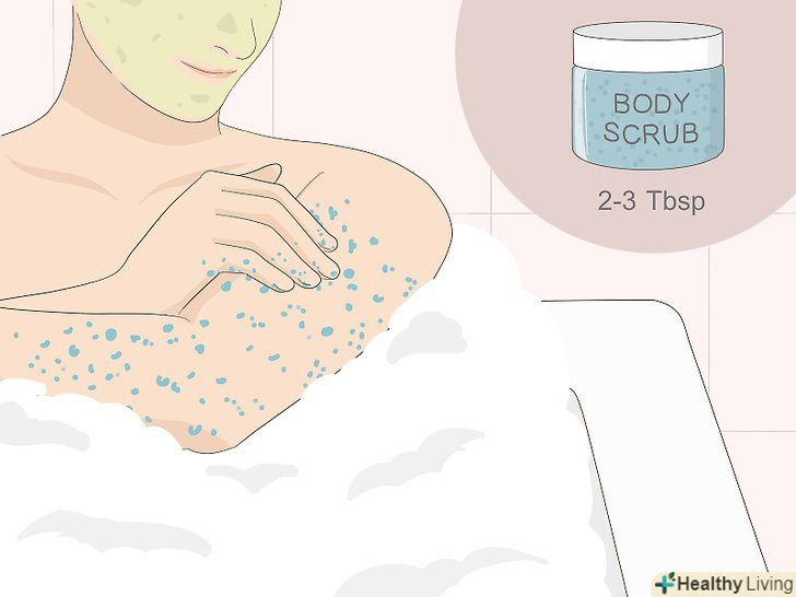 ВикористовуйтеСкраб для тіла , щоб провести процедуру відлущування і заспокоїти шкіру після важкого дня. купуйте скраб у магазині або зробіть це самостійно . Поки будете перебувати у ванні, зачерпніть приблизно 2-3 столові ложки (30-45 мл) скрабу і втирайте його в руки і ноги круговими рухами. Змийте скраб, коли закінчите. [14]- Скраб для тіла можна використовувати на будь-якому етапі, але якщо вам не хочеться купатися в залишках кошти, скористайтеся ним в самому кінці.