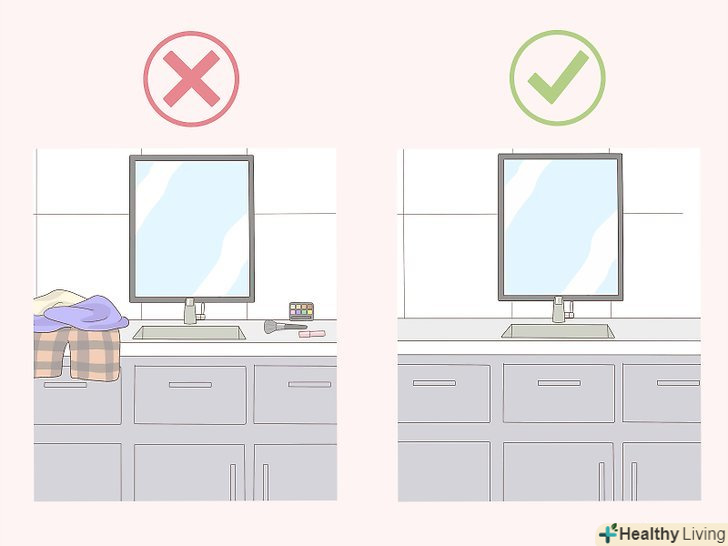 Наведіть порядок у ванній кімнаті, щоб зробити простір візуально привабливим. приберіть брудний одяг, косметику, Іграшки і все інше, що займає місце на полицях і гачках. При необхідності приберіть їх в ящик комода або винесіть в коридор. Останнє, що ви захочете, - це оглядати ванну кімнату і переживати через безлад! [8]- По можливості виділіть 10-15 хвилин на прибирання ванної кімнати перед основним процесом. Так вам буде легше розслабитися.