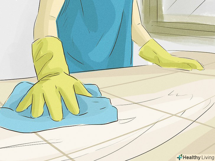 Регулярно мийте та дезінфікуйте поверхні у вашому домі. на кухні і у ванній кімнаті дуже швидко поширюються бактерії, тому попередьте їх появу, регулярно протираючи стільниці, раковину і унітаз. Робіть це регулярно кожного разу, коли вони стають брудними. Не залишайте крихти або їжу на столі на кухні, так як це може залучити мурах і хвороботворні бактерії.- Використовуйте дезінфікуючий спрей у ванній кімнаті і на кухні, проводячи прибирання раз в кілька тижнів.