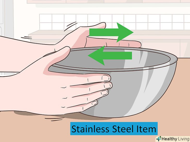 Потріть руки предметом з нержавіючої сталі, щоб позбутися від неприємного запаху. просто візьміть будь-яку річ з нержавіючої сталі (наприклад, столовий прилад або миску) і потріть руки під струменем холодної води. Продовжуйте до тих пір, поки запах не нейтралізується. [3]- Для цього способу підійде будь-який предмет з нержавіючої сталі, включаючи раковину, якщо вона зроблена з цього матеріалу.