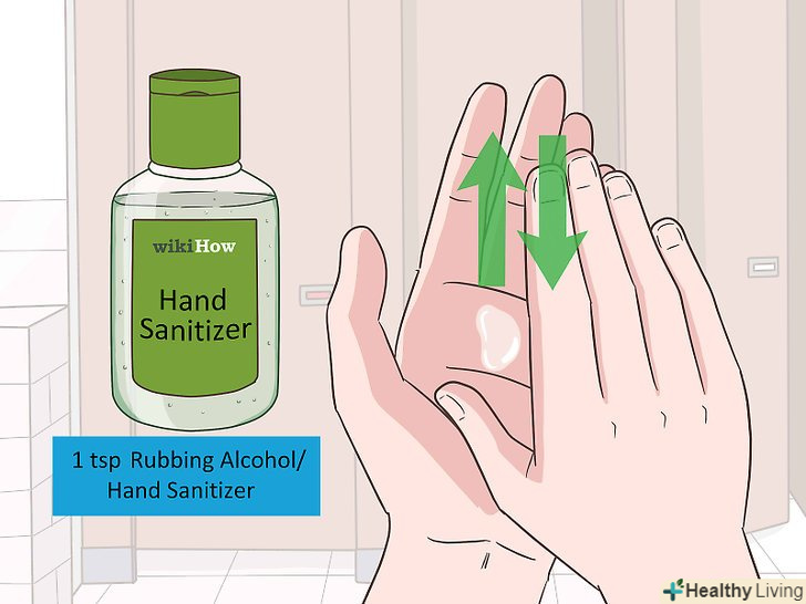 Протріть руки медичним спиртом або антибактеріальним гелем. налийте 1 столову ложку (15 мл) в долоні і тріть їх до тих пір, поки вони не висохнуть, а засіб не випарується. [5]- Так як спирт може дуже сильно сушити шкіру, найкраще пробувати цей спосіб один раз і переходити до іншого, якщо запах все ще відчувається.