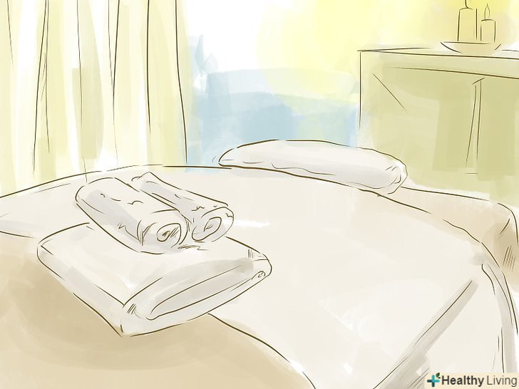 Створіть комфортну і привабливу обстановку. неважливо, чи робите ви масаж на професійному масажному столі, на ліжку або на іншій поверхні, необхідно створити якомога більш комфортну обстановку для людини, якій ви робите масаж. У кімнаті повинно бути досить тепло, щоб можна було роздягнутися, якщо це необхідно, а простирадла повинні бути чистими і свіжими. Запаліть свічки і ароматичні палички, щоб створити особливу атмосферу в кімнаті.- Іноді при масажі використовують гарячі камені, пов'язки на очі, масажні качалки та інші різноманітні пристосування, але іноді найкраще робити все просто. Не обов'язково підбирати хитромудрий набір інструментів, щоб зробити чуттєвий масаж і подарувати насолоду своєму партнерові.