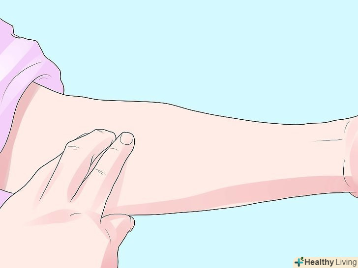 Знайдіть середину горизонтальної складки на лікті. оберніть протилежну руку навколо зовнішньої сторони ліктя і натискайте великим пальцем, рухаючись до зовнішньої сторони руки, поки не знайдете місце, в якому відчуваєте невелику або гострий біль при натисканні. Якщо ви відчули біль, ви визначили біологічно активну точку.