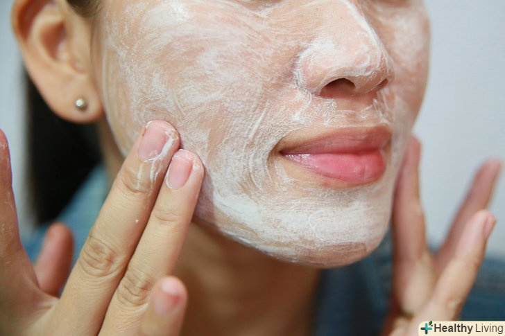 Помийте обличчя своїм улюбленим миючим засобом. дотримуйтесь інструкцій, вказаних на упаковці, обробляйте їм обличчя не більше 15-30 секунд. Потім змийте водою.
